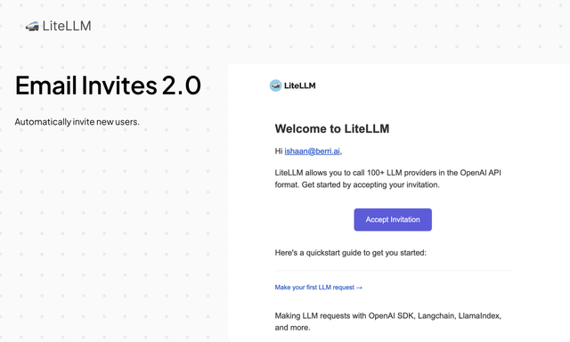 | Invitation Subject | EMAIL_SUBJECT_INVITATION | string | "LiteLLM: New User Invitation" | "Welcome to Your Company!" | Subject line for invitation emails |